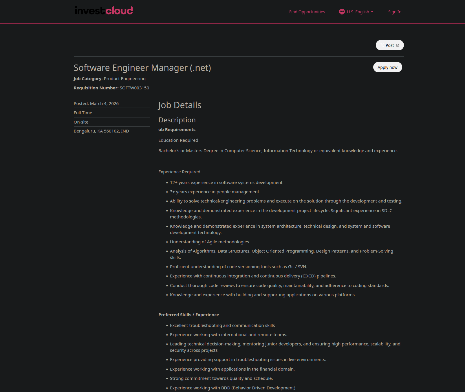 By checking the job openings posted by InvestCloud in Bengaluru (Bangalore), we find a millimeter-perfect overlap with the positions eliminated in Marghera: