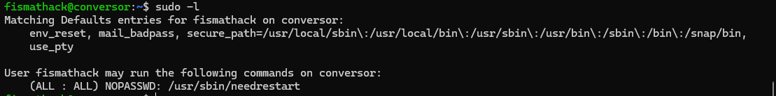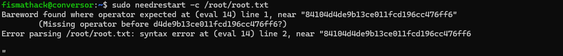 fismathack@conversor:~$ sudo needrestart -c /root/root.txt